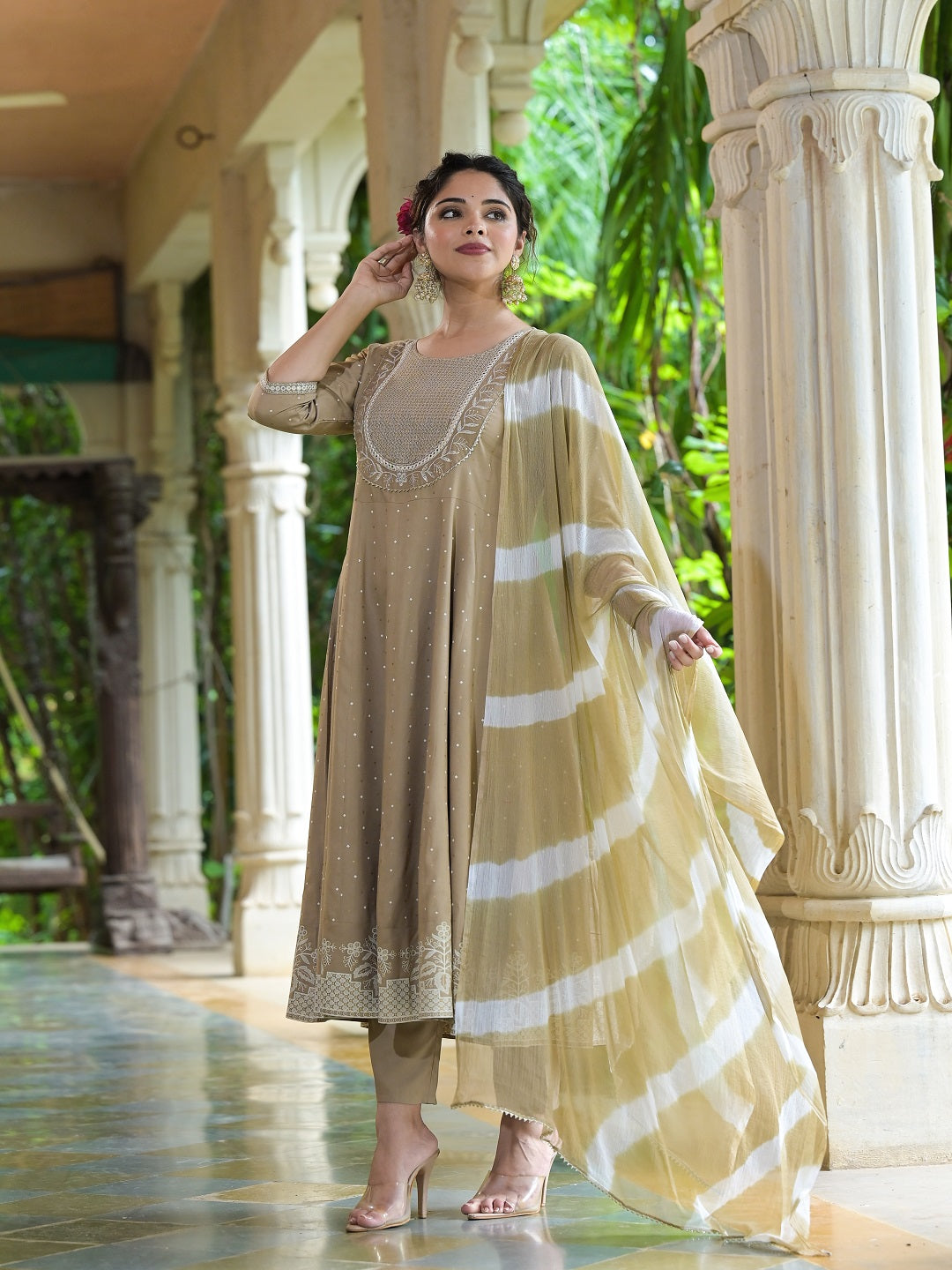 This patterned rayon A-line kurta is the ideal option for the mother who values classic style. The outfit is made more elegant and feminine by the gorgeous white floral design, which also makes it a versatile garment that can be dressed up or down for any occasion. This kurta is going to become a wardrobe necessary for your mom, whether she dresses it up with powerful accessories for special gatherings or wears it with leggings for a laid-back day out.