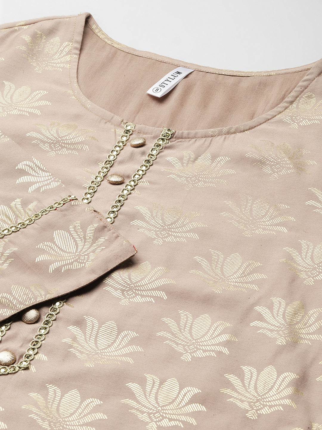 Grace your style with this stunning Stylum Women's Gold Printed Rayon Straight Kurta. This stunning festive kurta is the epitome of elegance and style. This straight kurta for women is made from premium rayon fabric. Its beige-colour exudes uniqueness and is guaranteed to make a lasting impression on special occasions. Pair this beautiful kurta with contrasting pants or matching accessories to create your desired look. Whether you want to make a bold statement with a vibrant colour combination or prefer a more coordinated and polished appearance, this kurta allows you to experiment and express your personal style. So don't miss out on this beautiful kurta.