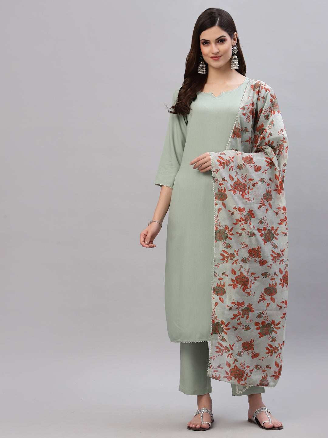 Elevate your style quotient and make a fashion statement with this stunning Solid Rayon Straight Kurta Pant Dupatta Set, a perfect blend of comfort and style. The kurta is paired with solid pants that have a full elasticated waistband, ensuring a comfortable fit for all-day wear.To add a touch of uniqueness and charm, this set comes with a beautifully crafted Kutch printed kota doriya dupatta. The intricate prints on the dupatta enhance its overall appeal and make it a versatile accessory that can be styled in multiple ways.With its contemporary design and attention to detail, our Solid Rayon Straight Kurta set with Dupatta is a must-have addition to your wardrobe.