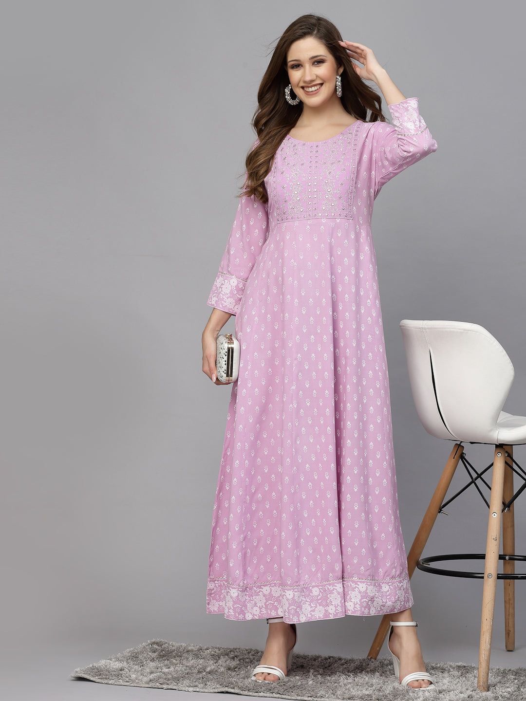 Stylum Women's Green Printed & Embroidered Rayon Anarkali Kurta (LAVENDERDION)