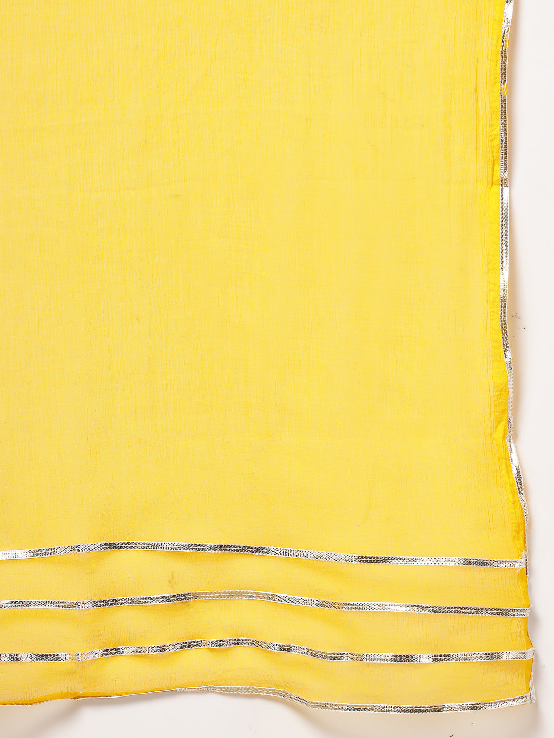 Pink cotton floral printed anarkali kurta with beautiful printed yoke and gota detailing on it. kurta sleeves and flared designed with hravy gota laces. Has fully elasticated cotton printed pants. Chiffon solid dupatta has gota laces and printed border. Kurta Length- 48" Inch, Pant Length - 38'' Inch, Dupatta Length - 2.30 mtr Â