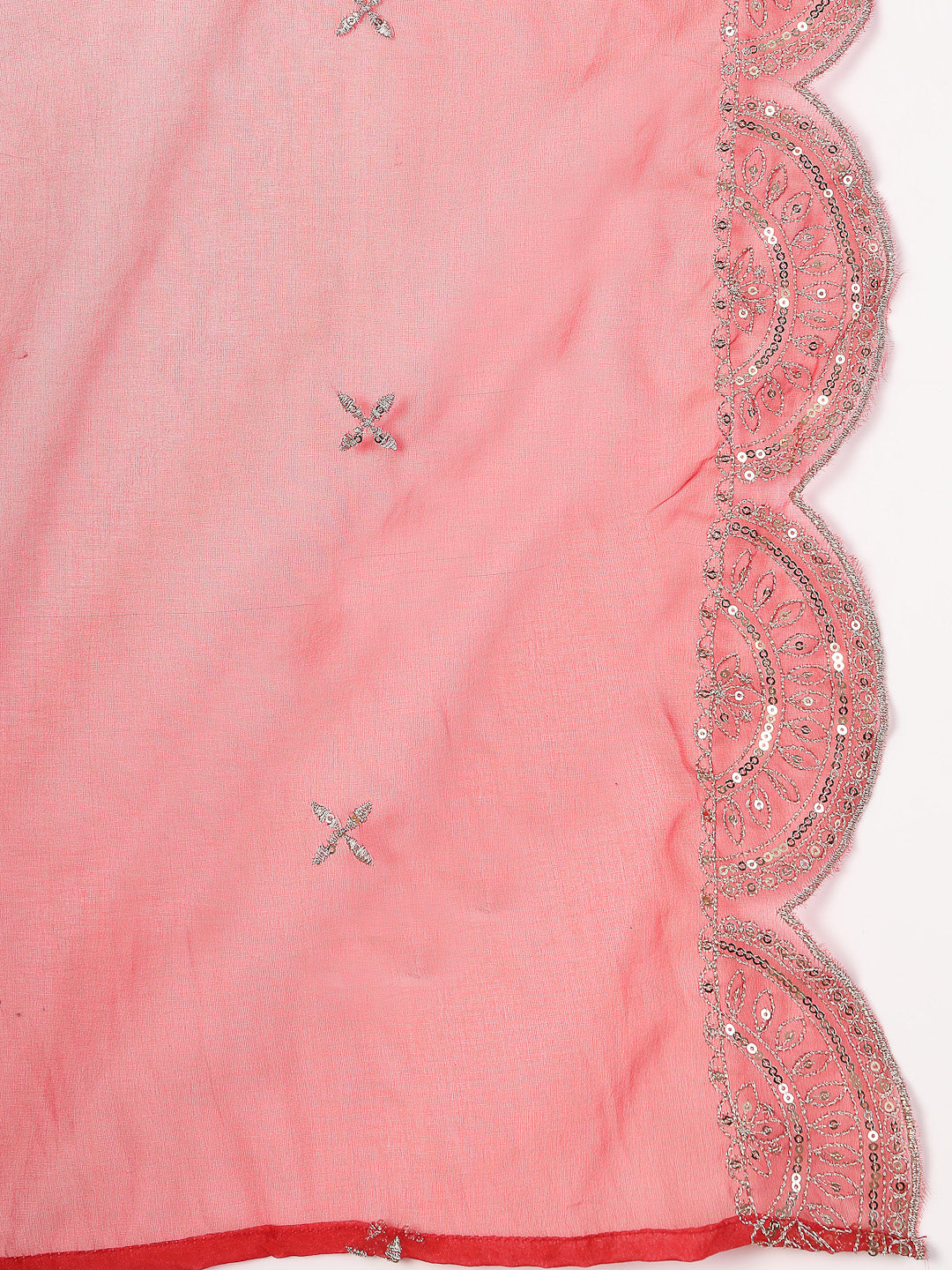Red solid full flared tiered kurta pant dupatta set. Flared kurta has heavy lace detailing on neckline and bottom. Strappy tie-up shoulder. Solid rayon bottom has fully elasticated belt. Paired with organza scalloped embroidery dupatta. Kurta Length - 52'' Inch, Pant Length - 38'' Inch, Dupatta Length - 2.30 mtr.