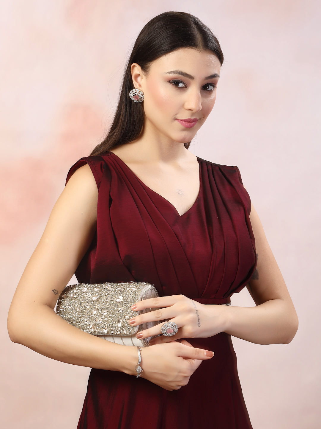 Stylum Women's Wine Solid Party Wear Satin Gown (GWWINERIWAZ)