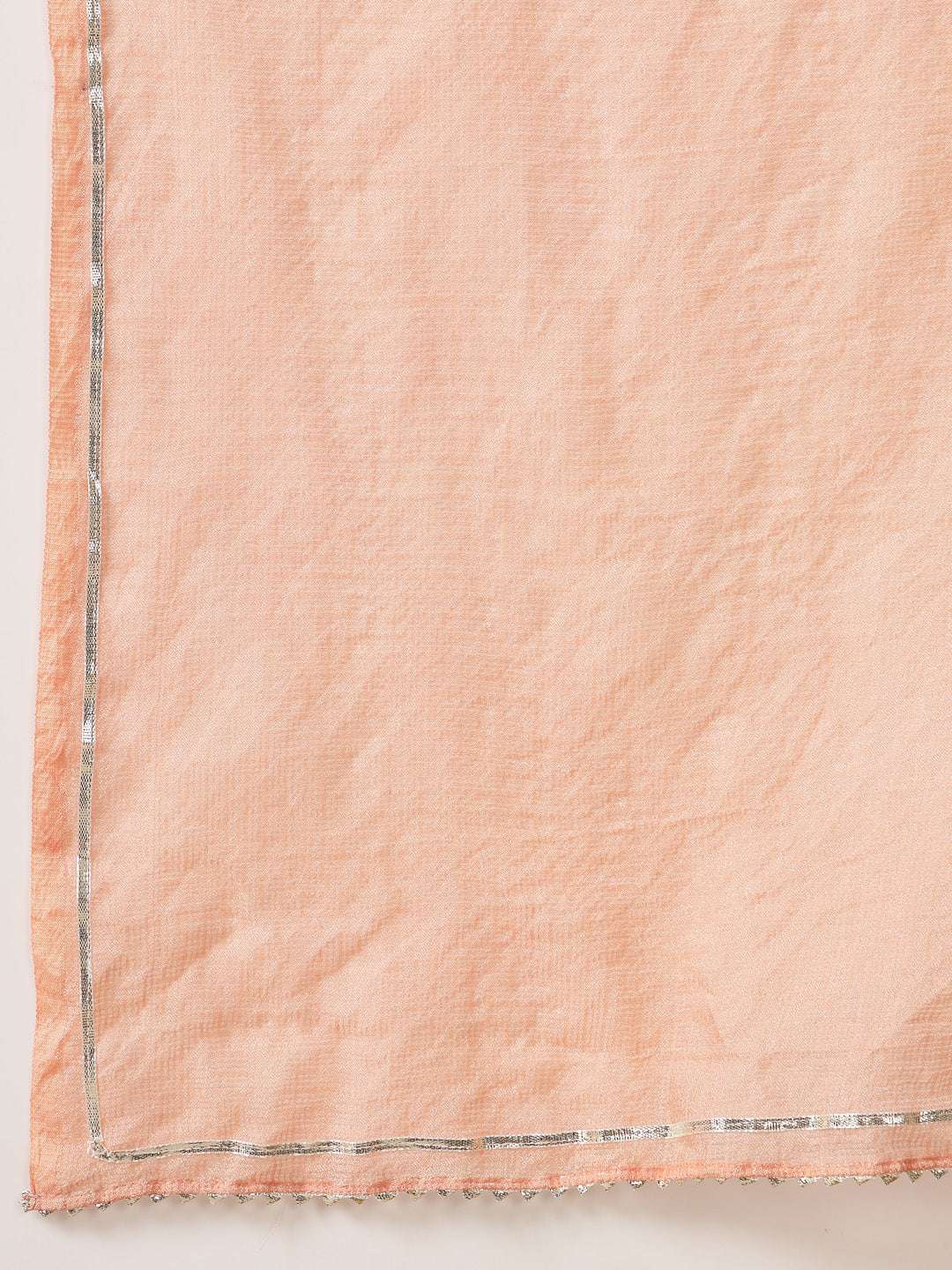 Pestal peach printed and embroidered straight kurta pant dupatta set. Kurta has embroidered yoke, with 3/4 sleeve. It has solid afghani pant and solid kota doriya  dupatta, Kurta Length- 45" Inch, Pant Length - 38'' Inch, Dupatta Length - 2.30 mtr.