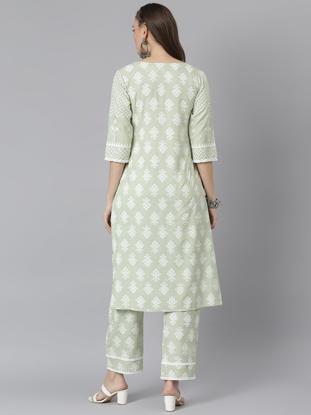 Experience the feeling of being special with this fashionable Stylum Women's Printed Rayon Straight Kurta Pant Set, a perfect choice for those who want to be effortlessly chic and stylish. This mint green kurta and pant set is made from high-quality rayon fabric, ensuring comfort and durability. The Khari printed calf-length yoke detailed kurta features a unique and eye-catching design that will make you stand out from the crowd. With its three-quarter sleeves, it strikes the perfect balance between elegance and practicality. The matching mint green pant is equally stunning, with a full elasticated waistband for a comfortable and adjustable fit. Wear this beautiful kurta set with dupatta and elevate your everyday style.