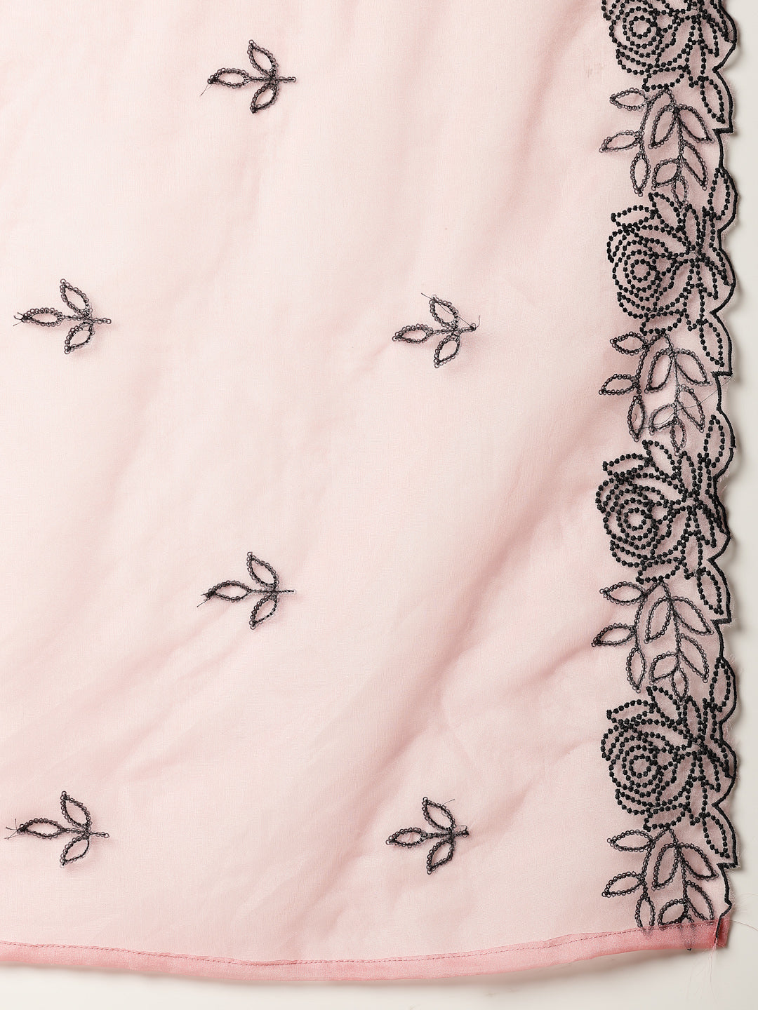 Pink pakistani silk blend embroidered kurta pant dupatta set. Kurta has beautiful thread and sequin embroidery with lace detailing on it. Solid silk bottom has fully elasticated belt. Paired with embroidered organza dupatta, Kurta Length- 45" Inch, Pant Length - 38'' Inch, Dupatta Length - 2.30 mtr