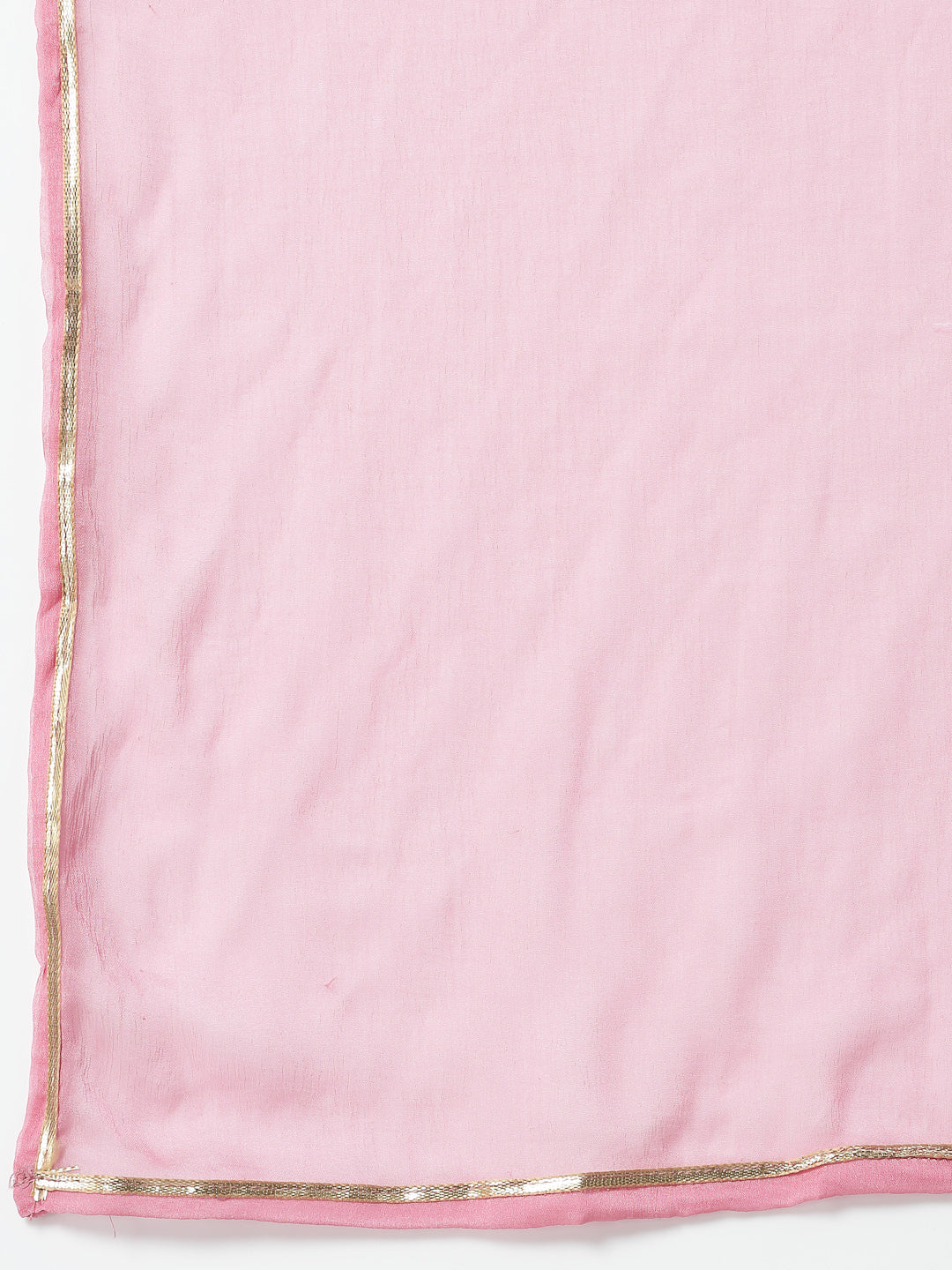 Stylum Women's Printed & Embroidered Chanderi Cotton Kurta Sharara Dupatta Set (KSDKASATAPINK)