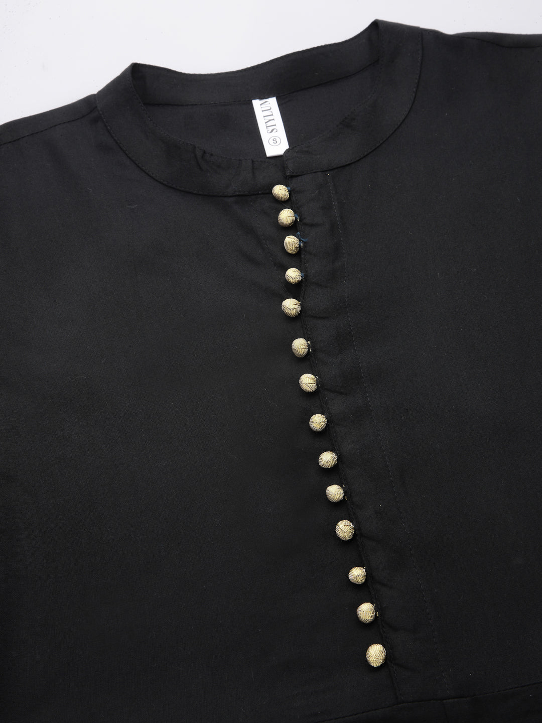 Upgrade your style with our Printed Rayon Anarkali suit sets. Crafted with care, this black rayon kurta features a printed border on the bottom and sleeves, adding a touch of elegance to your ensemble. The gold fabric potli button detailing on the placket adds a regal charm, making this kurta perfect for special occasions or festive celebrations. To enhance your gracefulness, pair this anarkali suit for women with beautiful accessories like jhumkas, kadas, and jutties. Get this anarkali suit set with dupatta today!
