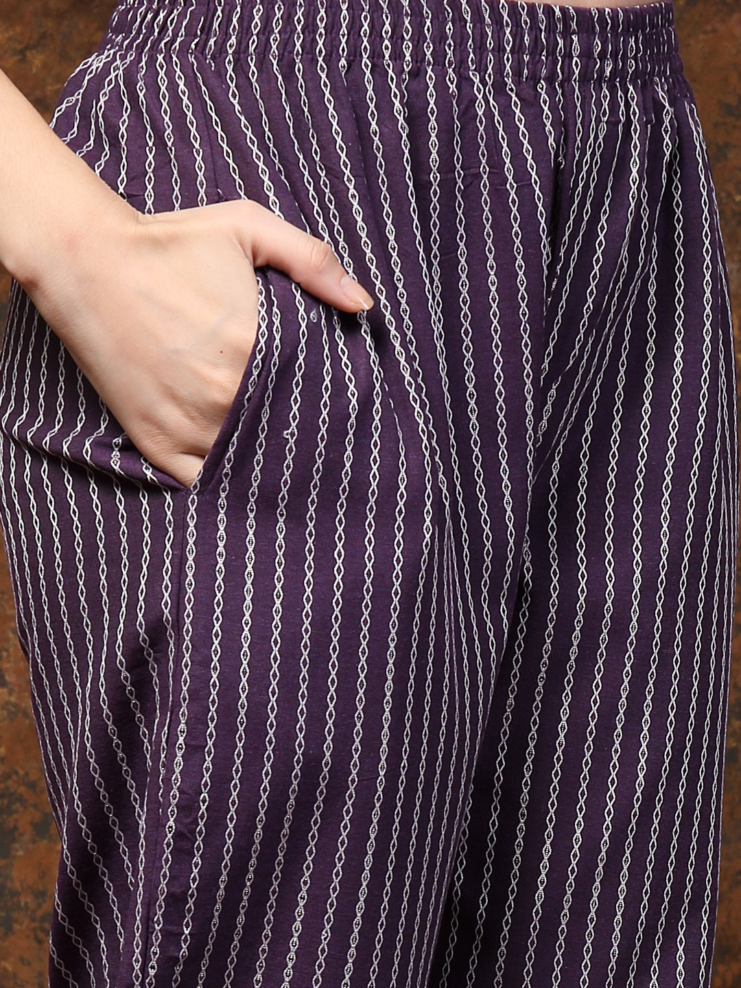 Stylum Women's Purple Embroidered Cotton Blend Straight Kurta Pant Set (KPPURPLEPOCKER)
