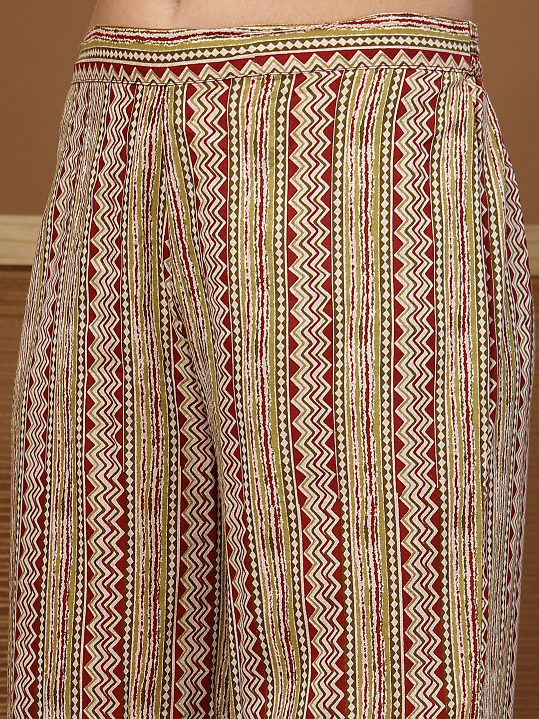 Stylum Women's Red Ajrakh Printed Cotton A-Line Kurta Palazzo Dupatta Set (KPDREDPULSE)