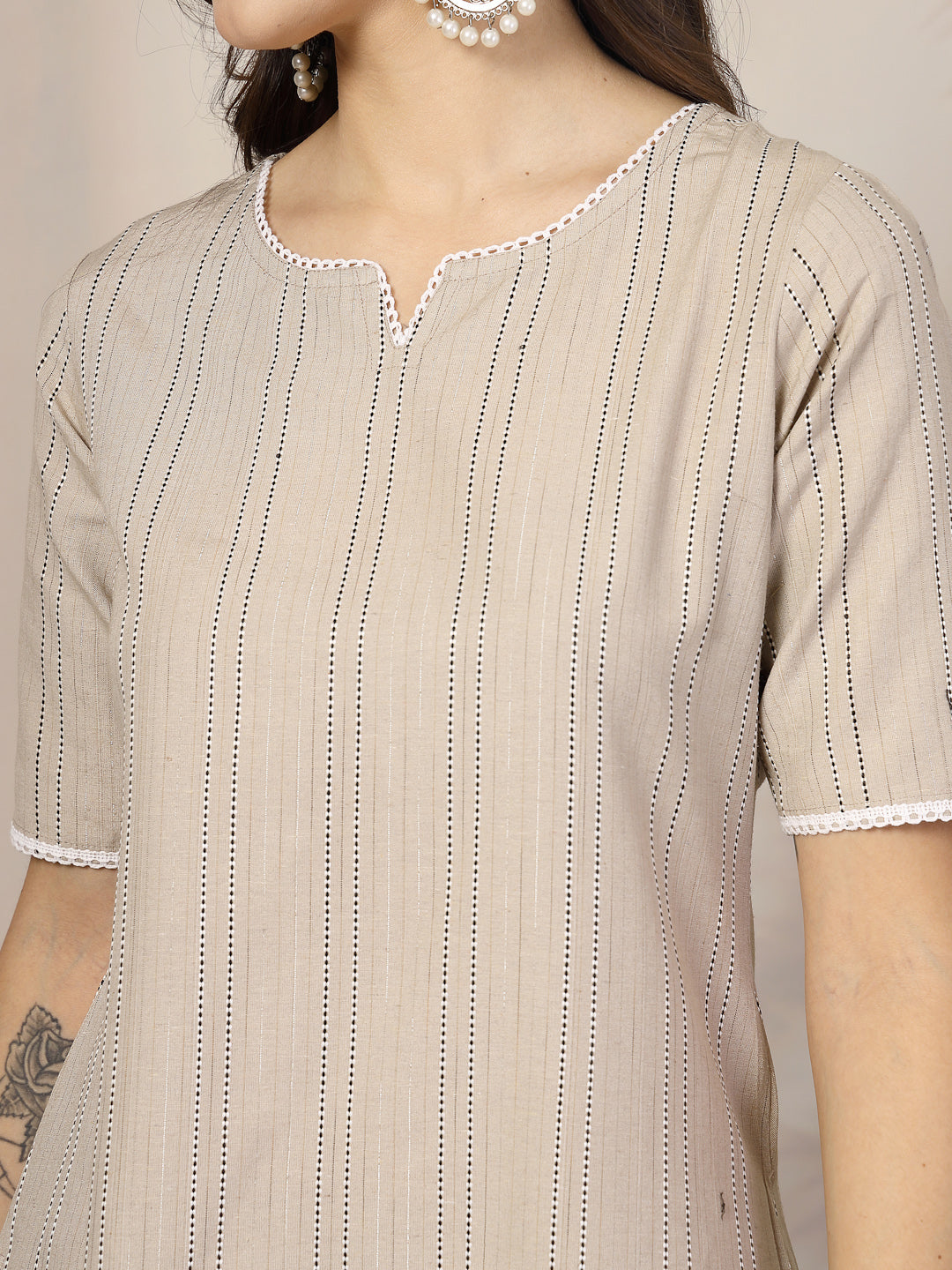 Stylum Women's Self Woven Kantha Cotton Co-Ord Set (BEIGEKATHACORD)