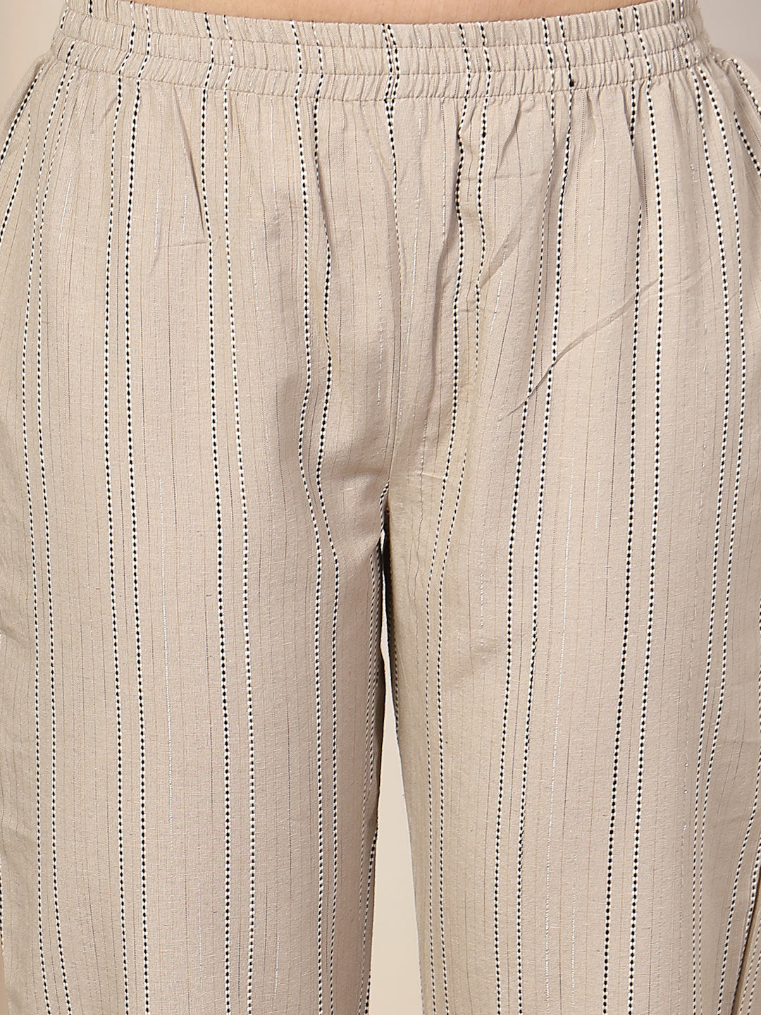 Stylum Women's Self Woven Striped Cotton Blend Straight Kurta Pant Set (NOORIBEIGE)