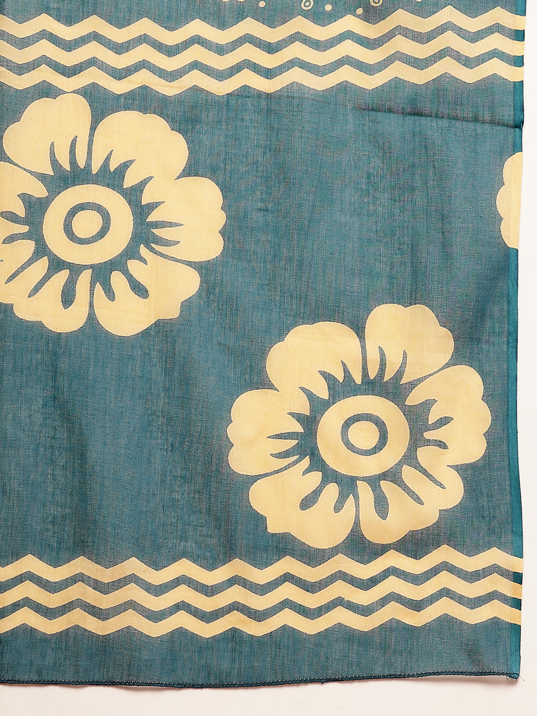 Sky floral printed cotton straight kurta pant dupatta set. Kurta has v-neckline with embroidery and sequins work detail on it / 3/4th regular sleeves. Sky printed cotton pant has fully elasticated waistband. Paired with printed voile dupatta. Kurta Length - 45'' Inch, Pant Length - 38'' Inch, Dupatta Length - 2.25 Mtr