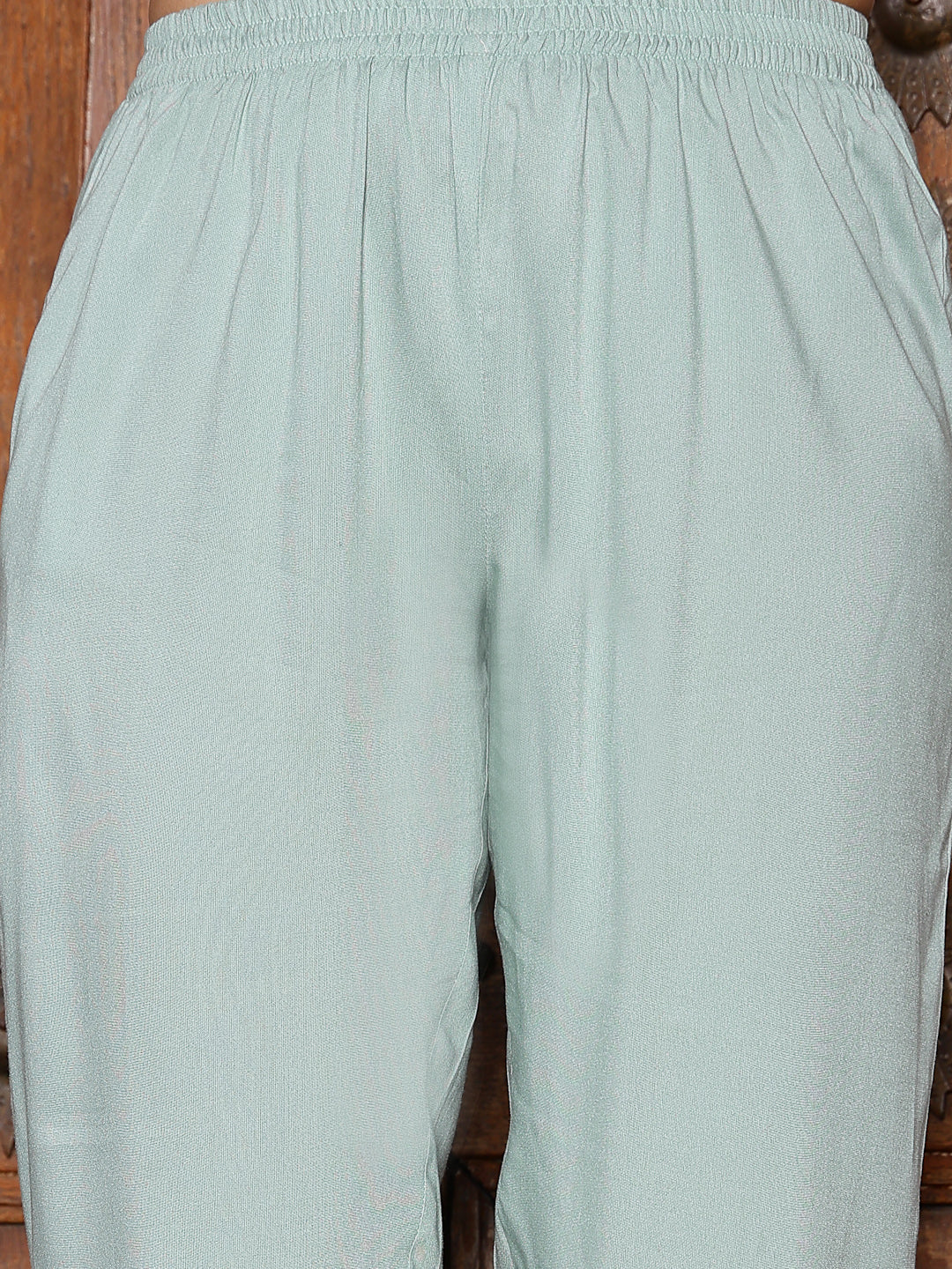 Stylum Women's Solid Rayon A-Line Kurta Pant Dupatta Set (KPDGREENMEGHA)