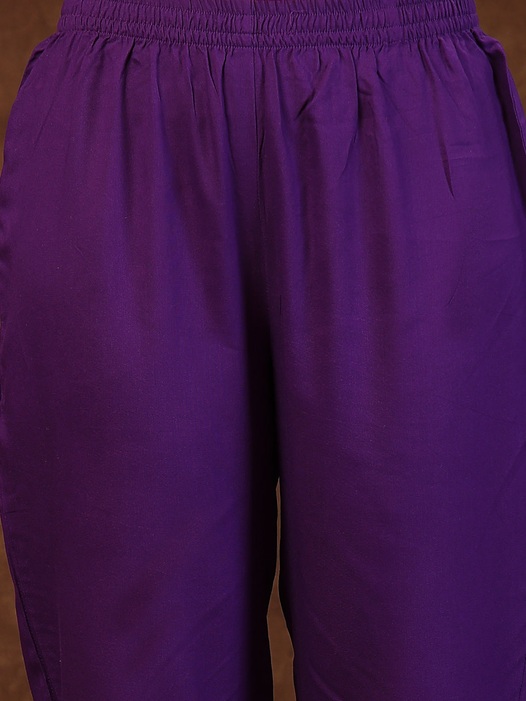 Voilet solid anarkali kurta pant dupatta set. Kurta has dori embroidered yoke. Scalping organza border on sleeves, flair and pant. Soild Pant is fully elasticated. Paired with organza embroidered dupatta. Kurta Length- 47" Inch, Pant Length - 38'' Inch, Dupatta Length - 2.30 mtr Â