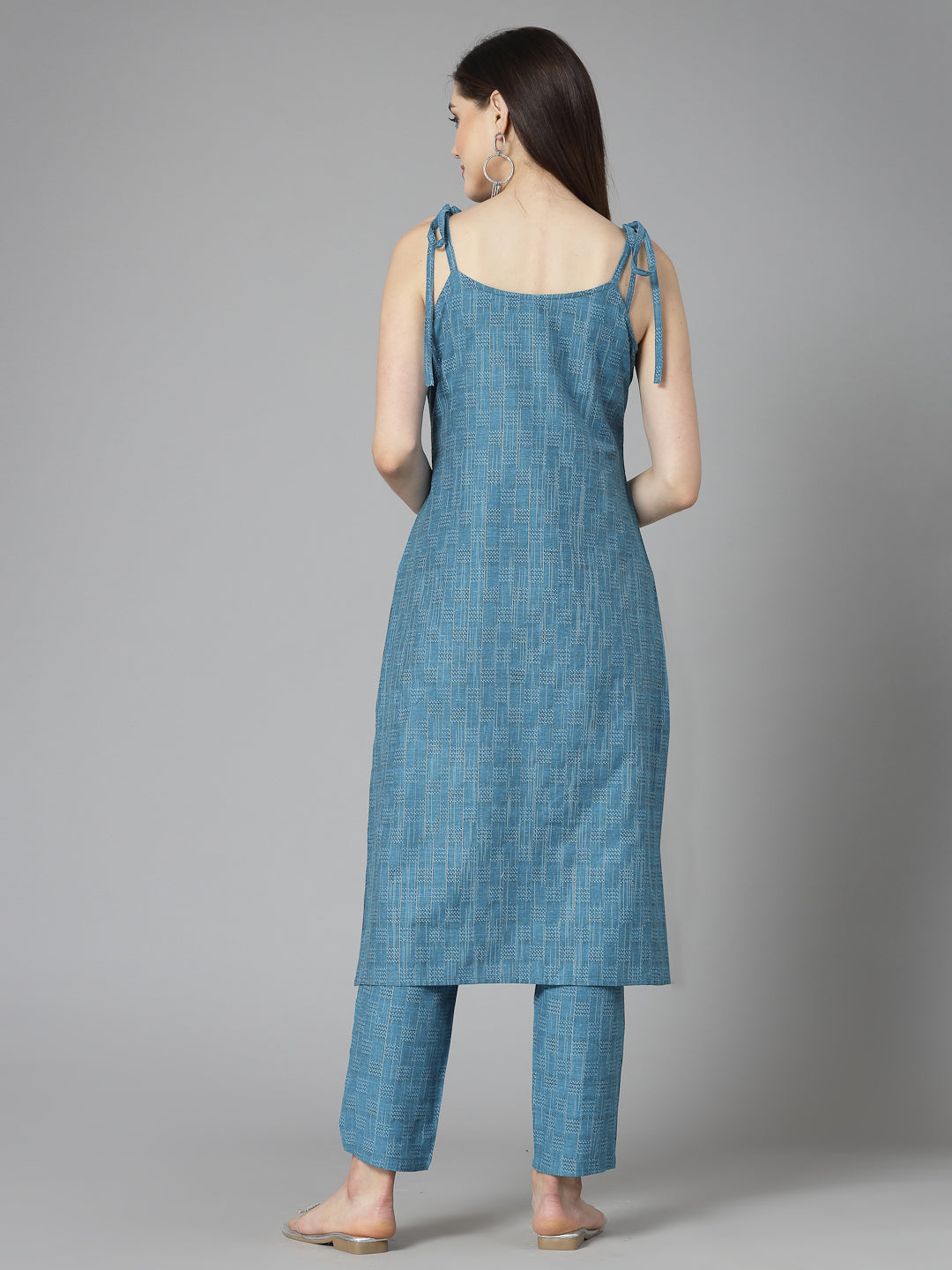 Embrace comfort and style with our Woven Designed Cotton Blend Straight Kurta Pant Set in teal.This cotton kurta sets for women is perfect for those who appreciate a combination of comfort and style.The kurta features a V-neckline and shoulder strap sleeves, adding a touch of elegance to the overall look. The edges of the cotton kurta set with dupatta are adorned with delicate lace attachments, giving it a feminine and sophisticated touch. Made from a high-quality cotton blend fabric, this kurta is not only soft and breathable but also durable, ensuring that it will last for multiple occasions. The woven design adds a unique texture to the fabric, making it stand out from the crowd. The pant in this set features a full elasticated waistband, providing a comfortable and adjustable fit.