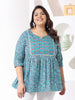 Plus Size Women's Floral Printed Cotton Peplum Top (TOPTURQMIRAPLUS)