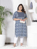 Plus Size Women's Indigo Printed Cotton Slub Straight Kurta (INDIGOBIRDPLUS)