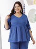 Plus Size Women's Self Woven Kantha Cotton Peplum Top (TOPROYALDAMPAPLUS)