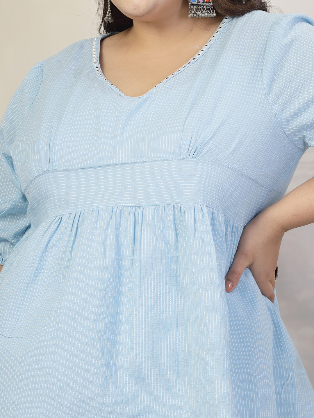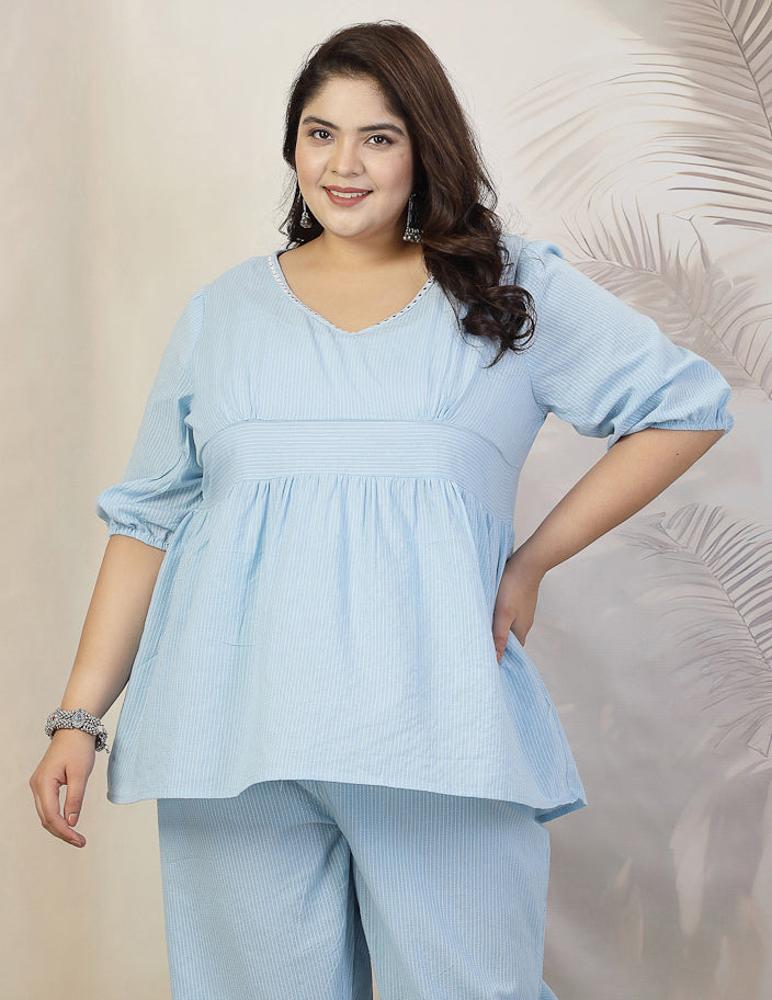 Stylum Plus Size Women Self Woven Kantha Cotton Top (TOPBLUEDAMPAPLUS)