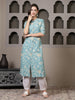 Stylum Women's Aqua Floral Printed Rayon A-Line Kurta Pant Set (KPFALANGAQUA)
