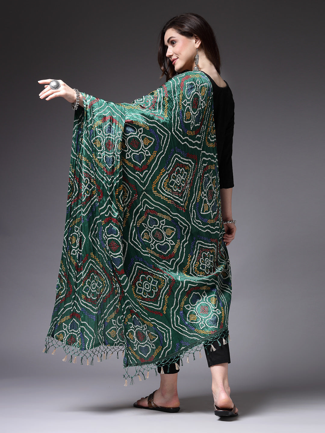 Stylum Women's Bandhani Print Silk Blend Dupatta (DUBGREENROLI)