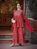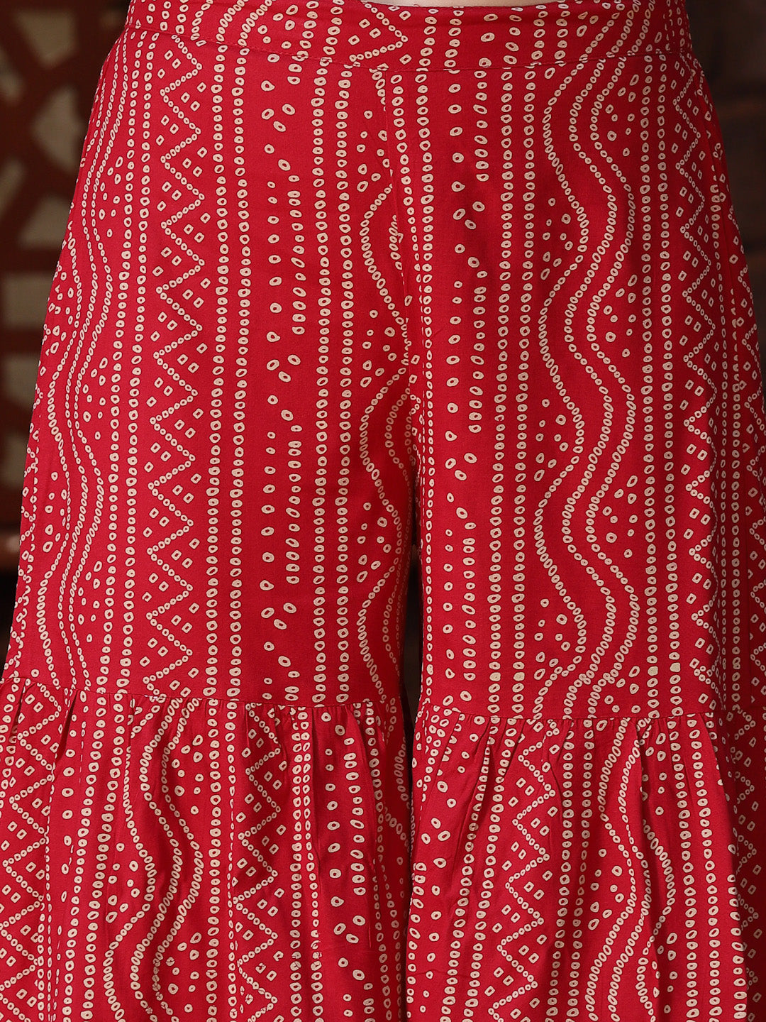 Stylum Women's Bandhej Printed & Embroidered Kurta Sharara Dupatta Set (KSDREDBERRY )