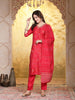 Stylum Women's Bandhej Printed Muslin Straight Kurta Pant Dupatta Set (KPDREDKORI)