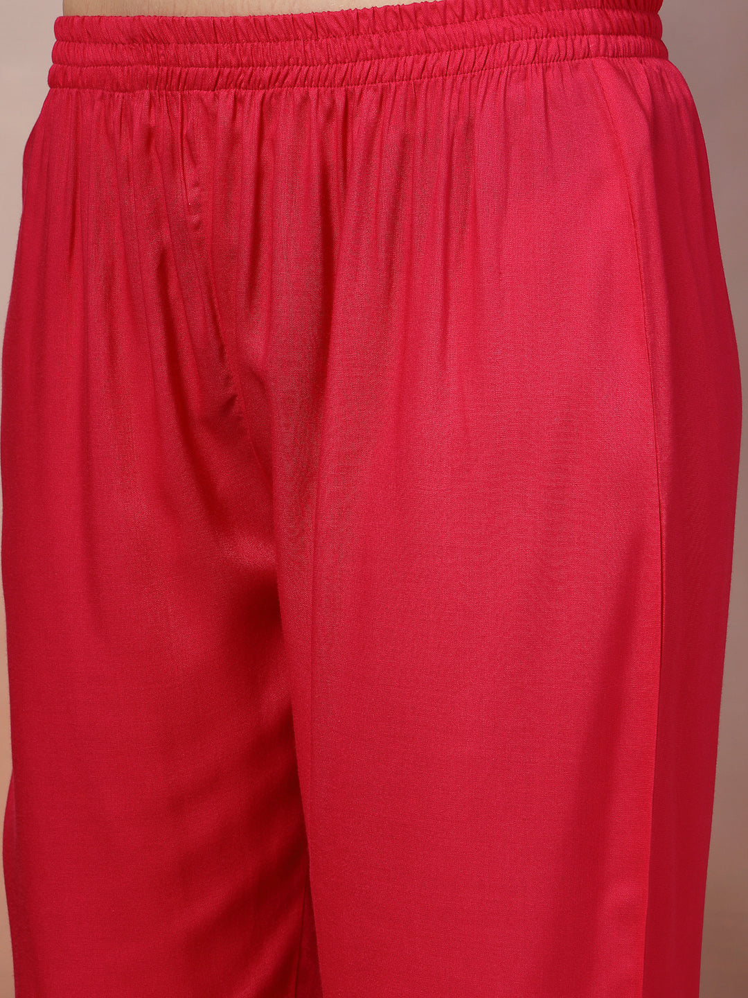 Stylum Women's Bandhej Printed Rayon Alia Cut Kurta Pant Dupatta Set (KPDPINKCHARLI)