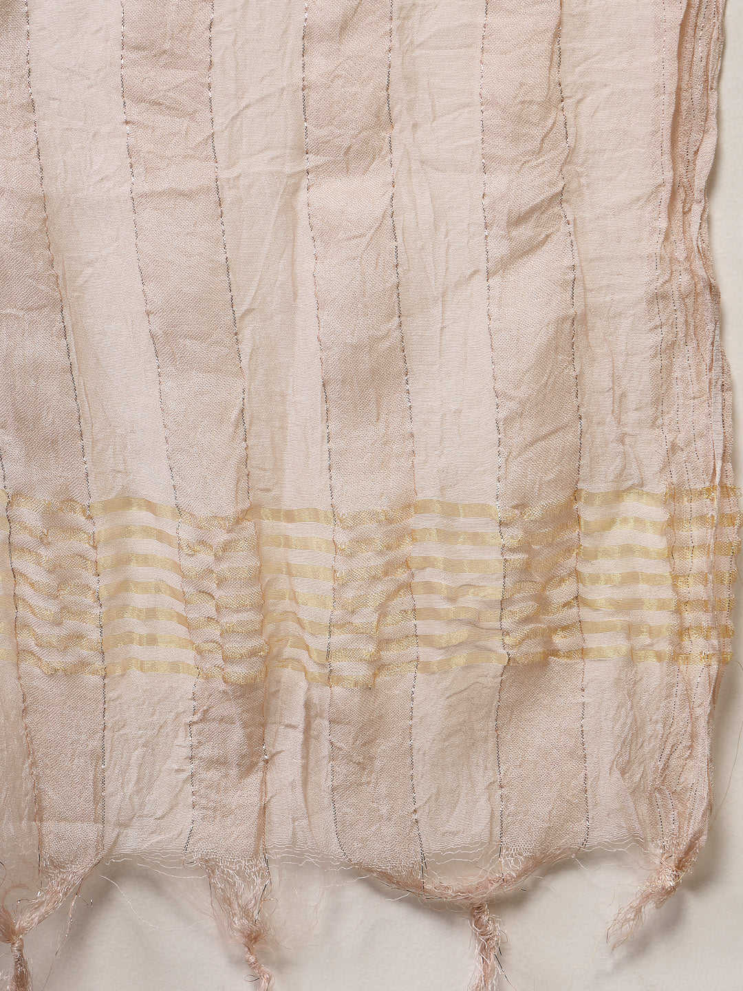 Stylum Women's Beige Woven Design & Embroidered Silk Blend Straight Kurta Pant Dupatta Set (KPDBEIGELAZER)