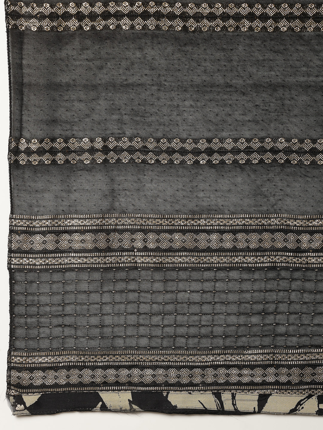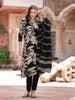 Stylum Women's Black Tropical Printed Muslin Straight Silk Kurta Pant Dupatta Set (KPDBLACKWESTIE)
