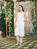 Cream rayon chikankari straight kurta. Kurta has round neck with strappy sleeves. Kurta Length- 42'' Inch.