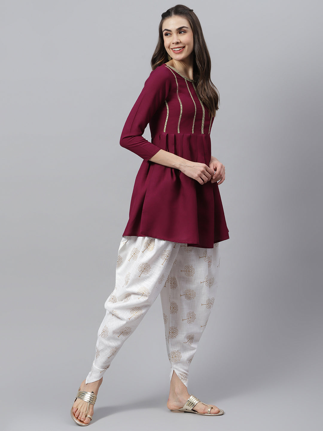 Stylum Women's Embellished Rayon Pleated kurta Dhoti Pant Set (Winedhotiset)