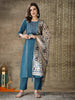 | Teal solid cotton blend straight kurta with sequence embroidery on yoke and lace detailing, soild pant which has full elasticated waistband and printed chanderi dupatta. Product's Kurta Length - 45" Inch, Pant Length - 38" Inch, Dupatta Length - 2.25 mtr. |