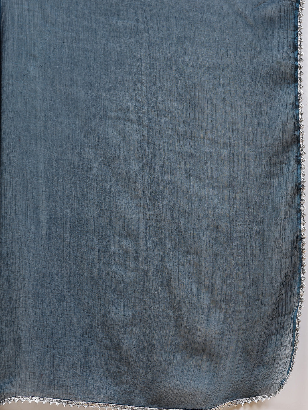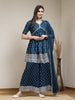 Stylum Women's Ethnic Motif Printed Naira Cut Rayon Kurta Palazzo Dupatta Set (KPDTEALSANJH)