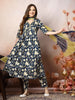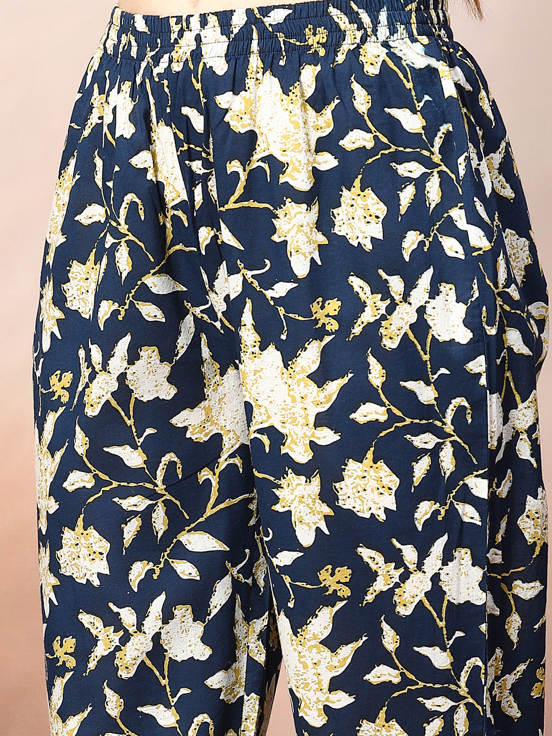 Stylum Women's Floral Printed Cotton Pleated Kurta Pant Dupatta Set (KPDBLUEZAYLA)