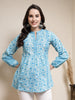 Sky Blue indigo printed cotton top with printed patching on princess line. Perfect for both casual and office wear. Products Length- 30" Inch.
