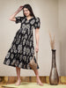 Black floral printed dress in Rayon fabric. Shirt collar dress with short sleeves. Wooden button on plackets. Dress Length -48''. Casual wear dress.