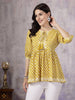 Mustard Geometric printed rayon peplum top. This trendy top has adjustable dori neck with ruffled 3/4th Sleeves. Top Length-28.5" Inch.