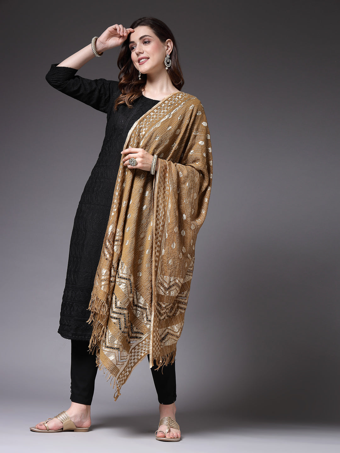 Jazz up your ethnic ensemble with this appealing and versatile nylon self designed dupatta detailed with fringes. Team it with a kurta or a tunic for a sublime look. Dupata Length- 2.25 Mtr