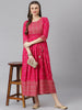 Wearing the exquisite Stylum Women's Gold Printed Rayon Flared Kurta is an absolute delight. Embrace the essence of ethnicity with this charming long-flared kurta adorned with a lovely pink border. The yoke placement has delicate laces and embellished doris with gota flowers, adding a touch of festivity to this attire. The rayon fabric is used to make this high-quality fabric, and this pleated kurta dress exudes elegance and comfort. Complete your look by pairing it with stunning heels and jhumkas, and you will surely become the centre of attention in town. Get your hands on this beautiful kurta without compromising on your style.