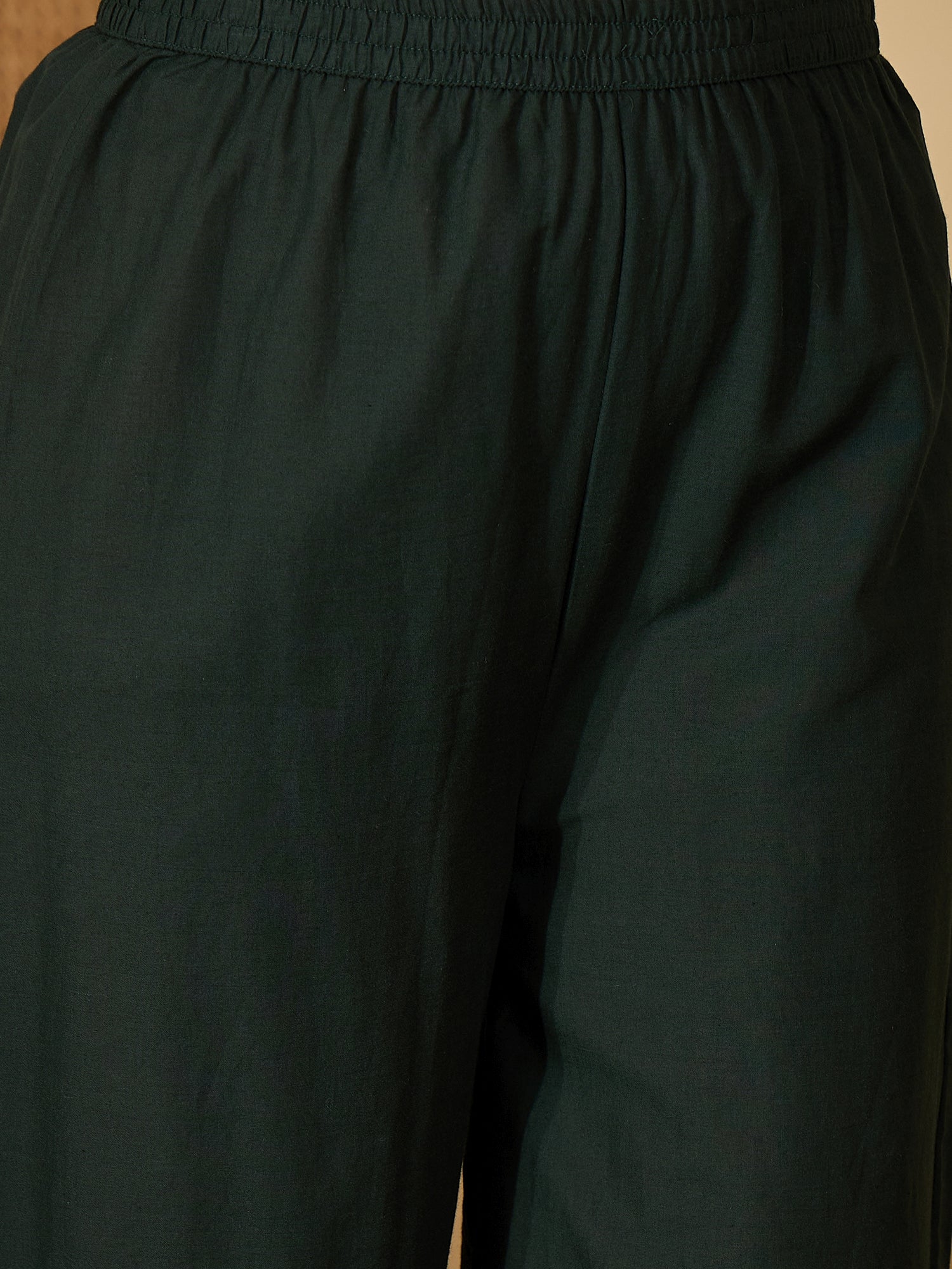 Green summer special pure cotton a-line co-ord set. Co-ord set has bell sleeves, kantha work, scalloped V-neckline. Paired with cotton printed fully elasticated palazzo. Tunic Length- 34" Inch, Palazzo Length- 38" Inch. Style it with oxidised jewellery.