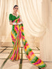 Green Striped Bandhej Georgette Saree. This Traditional Saree Is With Multicolour Embroidered Border. Saree Length- 5.5 Mtr, Blouse piece lenght- 0.8 Mtr