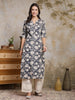 Grey beautiful floral printed straight kurta in rayon fabric. Has mandarin collar with front placket and 3/4 sleeves. Kurta length -45. Casual To Office Wear Kurta.