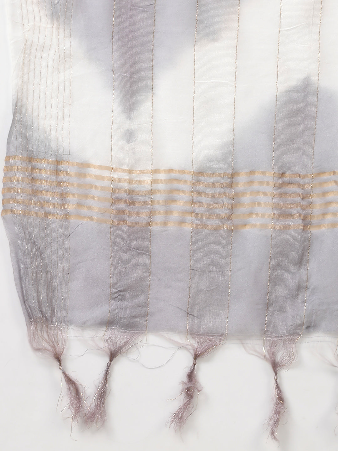 Daily wear grey silk blend tropical printed kurta pant dupatta set. With round neck button placket and sleeve's.Paired with tie and dye dupatta and printed pant. Kurta Length- 45" Inch, Pant Length - 38'' Inch, Dupatta Length - 2.30 mtr