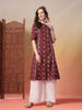 Stylum Women's Maroon Bandhej Printed Cotton A-Line Kurta (MAROONSORA)