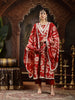 Maroon floral printed cotton flared kurta pant dupatta set. Kurta has round neck with cotton lace with tessels on neckline & regular sleeves. cotton solid pant has fully elasticated waistband. Paired with mulmul printed dupatta with cotton lace. Kurta Lenght- 46'' Inch, Pant Length- 38'' Inch, Dupatta Lenght- 2.30 Mtr