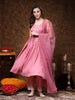 Stylum Women's Mulberry Pink Solid & Embroidered Italian Crush Anarkali Kurta Pant Dupatta Set (KPDMULBERRYOLA)
