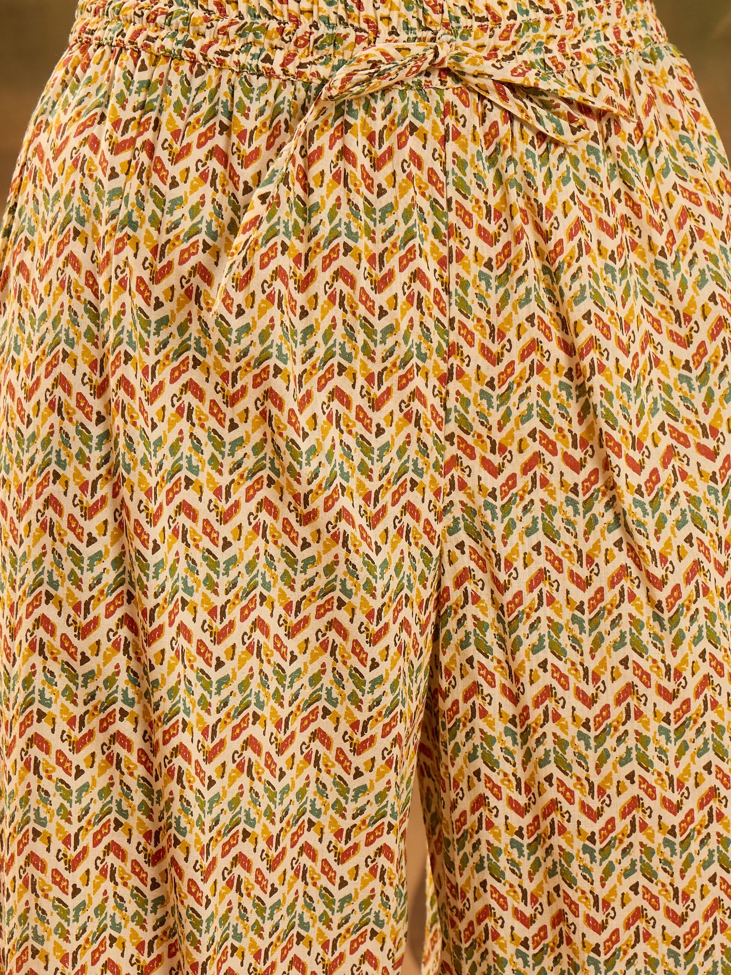 Mustard ethnic motif printed cotton straight kurta palazzo dupatta set. Kurta has v-neck with mirror work & lace detailing on neckline with sleeveless. Cotton printed palazzo has fully elasticated on waistbend. Paired with cotton printed dupatta. Kurta Length- 45'' Inch, Palazzo Length- 38'' Inch, Dupatta Length- 2.30 Mtr.