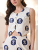 Navy blue & off white cotton flex floral printed peplum top. Top has front button placket on it with u-neck and Seeveless. Top Length- 22" Inch.